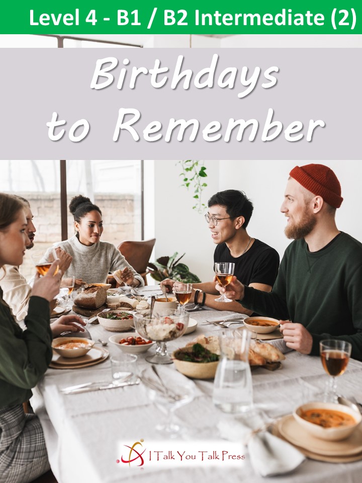 This page is about the Level 4 graded reader Birthdays to Remember from I Talk You Talk Press.